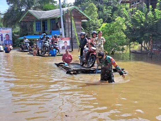 Babinsa menyampaikan bahwa banjir yang terjadi saat ini karena intensitas hujan tinggi di wilayah Kabupaten Barito Utara