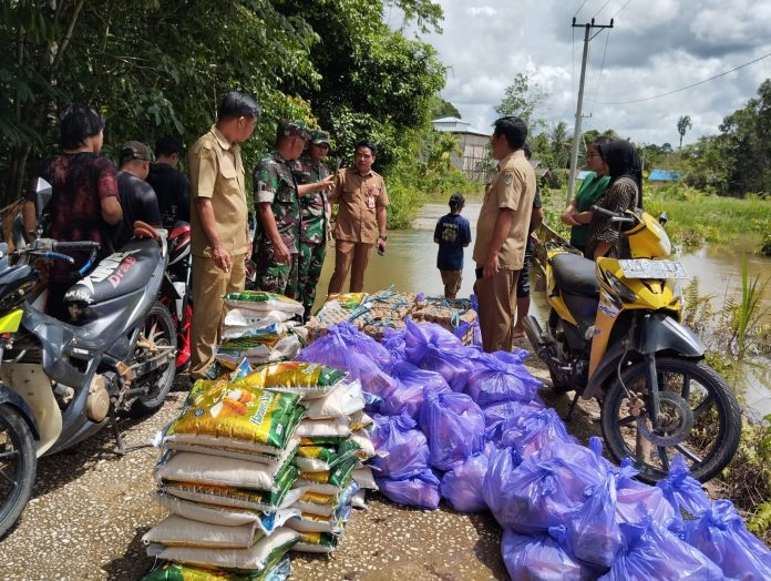 KABARMUARATEWEH.ID- Badan Penanggulangan Bencana Daerah (BPBD) Kabupaten Barito Utara dan Kodim 1013/Mtw, menyalurkan bantuan sembako kepada korban luapan Sungai Brio di Desa Sei Rahayu 1, Kecamatan Teweh Tengah, Kabupaten Barito Utara, Kalimantan Tengah, Senin (15/1/2024).