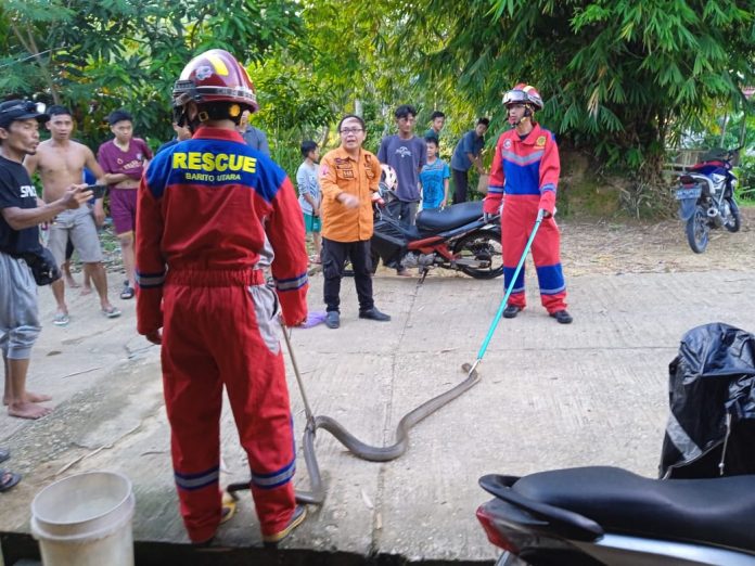 “Sore sekitar 16.54 WIB ada laporan dari warga. Ada ular kobra masuk ke dalam rumah diperkirakan panjang ular mencapai 3 meter berdiameter tangan orang dewasa,” kata Septiana.