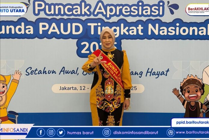 kabarmuarateweh.id – Bunda Pendidikan Anak Usia Dini (PAUD) Kabupaten Barito Utara, Hj. Maya Savitri Shalahuddin, menghadiri puncak Apresiasi Bunda PAUD Tingkat Nasional Tahun 2025 yang digelar oleh Kementerian Pendidikan Dasar dan Menengah (Kemendikdasmen). Kegiatan nasional tersebut berlangsung di Jakarta pada 12–14 November 2025 dengan mengangkat tema “Setahun Awal, Bekal Sepanjang Hayat”, yang menegaskan pentingnya peran Bunda PAUD dalam pembinaan generasi usia dini.