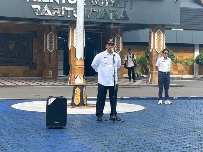 kabarmuarateweh.id – Bupati Barito Utara, Shalahuddin, memberikan arahan dan semangat kepada Aparatur Sipil Negara (ASN) dalam apel pagi yang digelar di halaman Kantor Pemerintah Kabupaten, Rabu, 29 Oktober 2025.