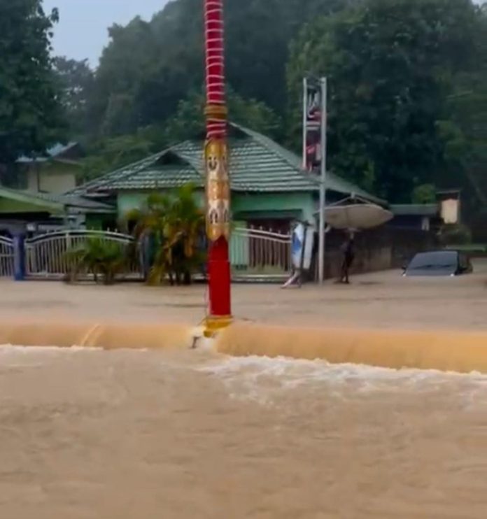 kabarmuarateweh.id – Curah hujan deras yang melanda Kota Puruk Cahu pada Sabtu malam, 4 Oktober 2025 menyebabkan genangan banjir rob di sejumlah titik jalan protokol. Salah satu kawasan yang terdampak cukup parah berada di Kelurahan Beriwit, Kecamatan Murung, Kabupaten Murung Raya.