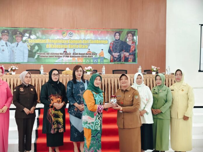 kabarmuarateweh.id – Dalam upaya mendukung program 100 hari kerja Bupati dan Wakil Bupati Barito Utara, Shalahuddin–Felix Sonadie, Dinas Lingkungan Hidup (DLH) bersama Tim Penggerak (TP) PKK melaksanakan kegiatan sosialisasi pengelolaan sampah dan sumbernya di Muara Teweh pada Senin (25/11/2025).
