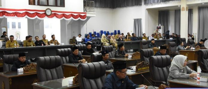 Rapat dipimpin oleh Ketua DPRD Hj Mery Rukaini didampingi oleh Wakil Ketua I, H Benny Siswanto dan Wakil Ketua II, Hj Henny Rosgiaty Rusli serta dihadiri oleh Pj Sekda Jufriansyah, unsur FKPD, Kepala Perangkat Daerah, dan undangan terkait lainnya.