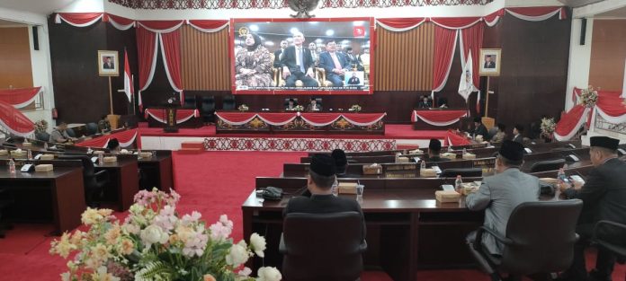 Acara berlangsung di ruang rapat paripurna DPRD secara live streaming dipimpin oleh Ketua DPRD Mura Doni didampingi Pj Bupati Hermon pada Jumat (16/8/2024).