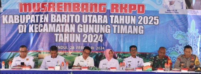 KABARMUARATEWEH.ID – Musyawarah Perencanaan Pembangunan Rencana Kerja Perangkat Daerah (Musrenbang RKPD) Kabupaten Barito Utara untuk tahun 2025 Kecamatan Gunung Timang resmi dilaksanakan pada Rabu, 28 Februari 2024 di halaman Kantor Kecamatan Gunung Timang Desa Kandui.