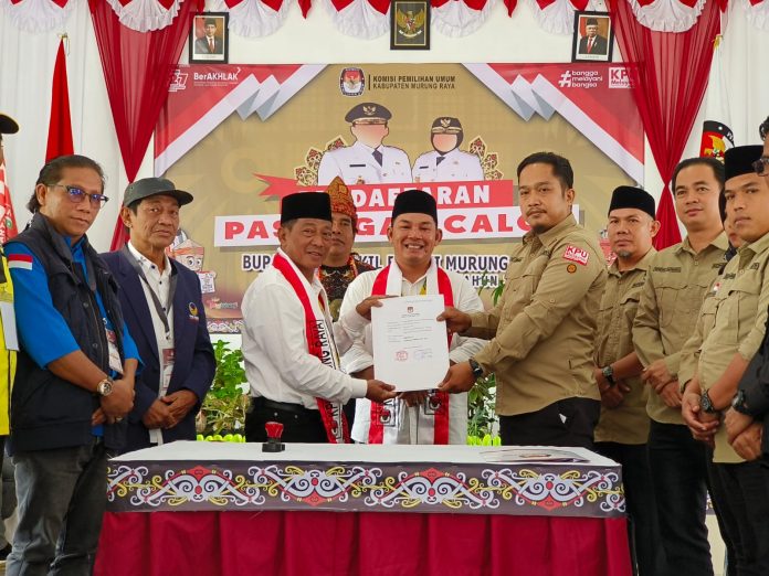kabarmuarateweh.id, PURUK CAHU – Pasangan calon (paslon) terakhir Heriyus-Rahmanto resmi mendaftarkan diri ke Komisi Pemilihan Umum (KPU) Murung Raya (Mura), Kalteng.