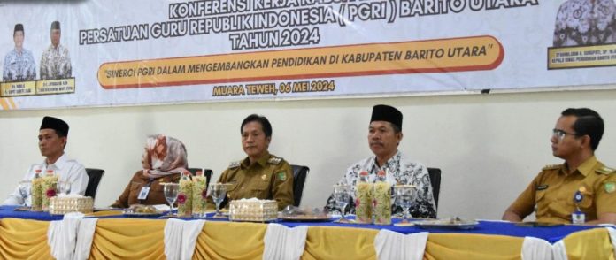 KABARMUARATEWEH.ID – Pj Bupati Kabupaten Barito Utara Drs.Muhlis berkesempatan hadir dan membuka kegiatan Konferensi Kerja Kabupaten Persatuan Guru Republik Indonesia (PGRI)Barito Utara Tahun 2024 bertempat di Aula Bappeda Litbang setempat pada Senin, 6 Mei 2024.