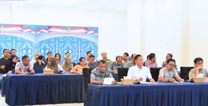 kabarmuarateweh.id, MUARA TEWEH – Pj Bupati Barito Utara (Barut), Muhlis didampingi Pj Sekda Jufriansyah bersama unsur kepala perangkat daerah menghadiri zoom meeting.