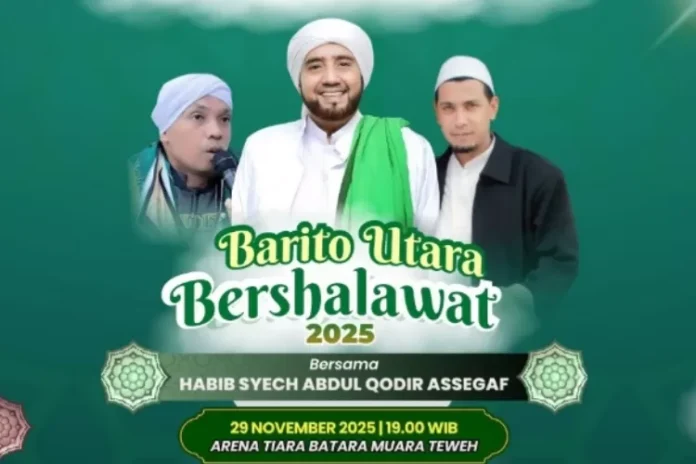 Habib Syech ulama kharismatik asal Kota Solo dijadwalkan akan mengisi “Barito Utara Bershalawat” di Arena Terbuka Tiara Batara, pada hari Sabtu malam, 29 November 2025, pukul 19.30 WIB.(*)