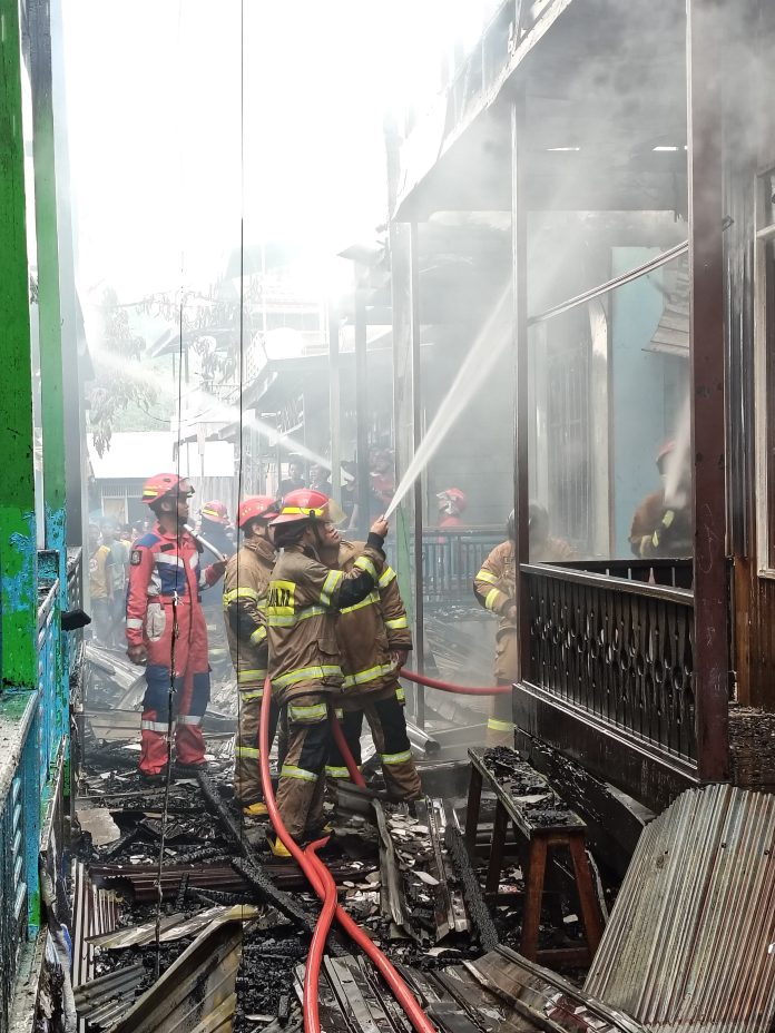 Sampai saat ini petugas Pemadam Kebakaran dan Penyelematan (Damkarmat) Kabupaten Barito Utara masih berusaha memadamkan api.