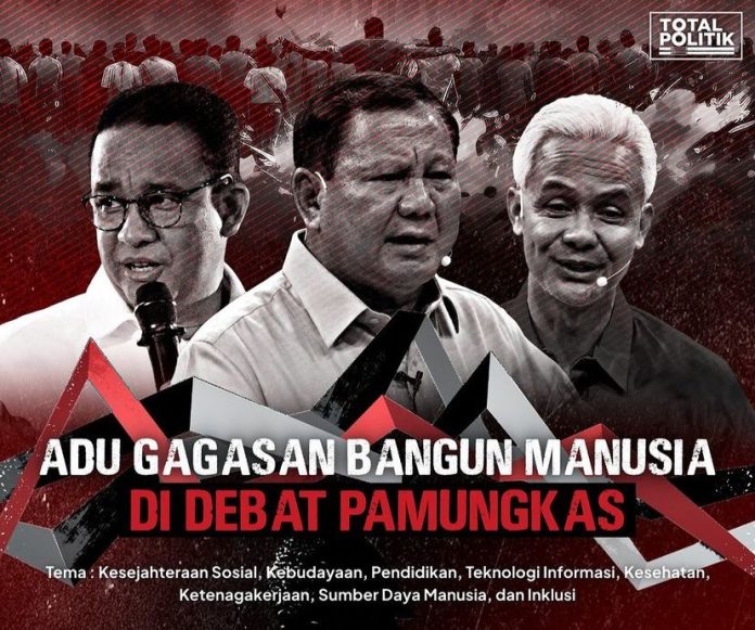 KABARMUARATEWEH.ID – Debat kelima capres-cawapres Pilpres 2024 diselenggarakan pukul 19.30-21.30 WIB, di JCC Senayan, Jakarta, Minggu (4/2/2024). Debat capres terakhir ini, mengangkat tema Kesejahteraan Sosial, Kebudayaan, Pendidikan, Teknologi Informasi, Kesehatan, Ketenagakerjaan, SDM, dan Inklusi.